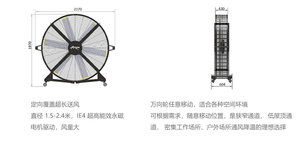 MDM 系列是移動(dòng)式大風(fēng)扇, 適用于一些特定場(chǎng)所由于空間受限不能頂部安裝大風(fēng)量低轉(zhuǎn)速吊扇, MDM 是一個(gè)較為理想的解決方案, 產(chǎn)品適合于狹窄通道, 低屋頂通道, 密集工作場(chǎng)所,或需要特定風(fēng)量的應(yīng)用場(chǎng)所。