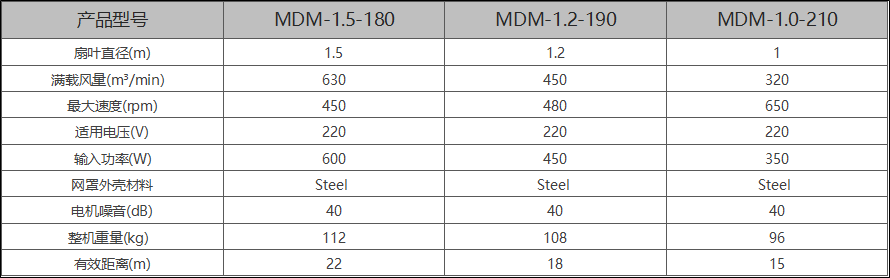 MDM采用永磁無(wú)刷電機(jī)直接驅(qū)動(dòng), 電機(jī)高效節(jié)能, 超高可靠性,扇葉采用高強(qiáng)度鋁鎂合金,流線結(jié)構(gòu)扇葉大化風(fēng)量及風(fēng)扇覆蓋距離, 相比低成本鈑金扇葉, 流線結(jié)構(gòu)扇葉有更好出風(fēng)效率,氣流平穩(wěn)性,靜音效果。 產(chǎn)品適合室內(nèi),室外使用, 方便實(shí)用